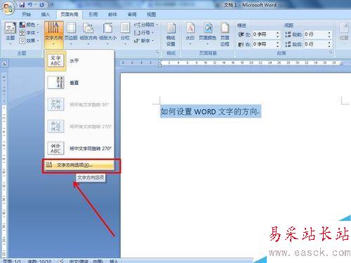 3、在下拉菜單中,選擇“文字方向選擇”欄