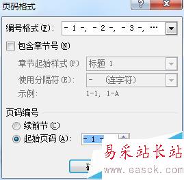 3、在“設置頁碼格式”中設置起始頁碼為1,確定完成。這時候就可以打印指定的頁面了。