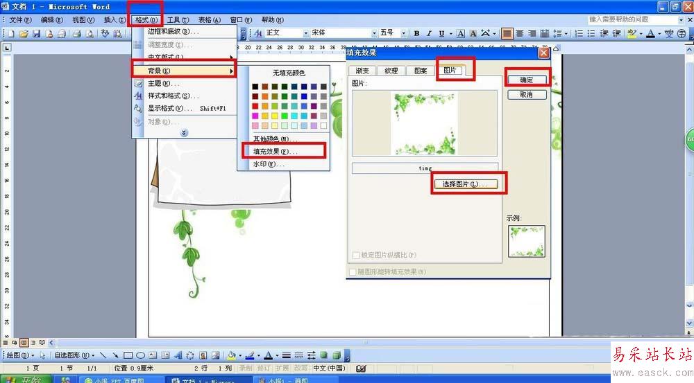 2、設置小報雅背景圖片后點擊確定。背景一般有一些花邊,但最好大部分底色是白色或淺白色。
