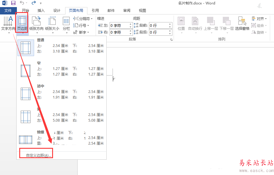 3、找到點擊頁面布局的頁面邊距進去,彈出并選擇自定義邊距進去。