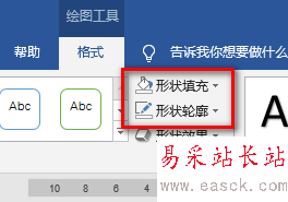 7、將光標定位在文本框內,上方會自動彈出繪圖工具選項卡,將形狀填充與形狀輪廓全都設置為“無填充”。