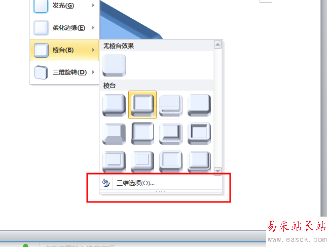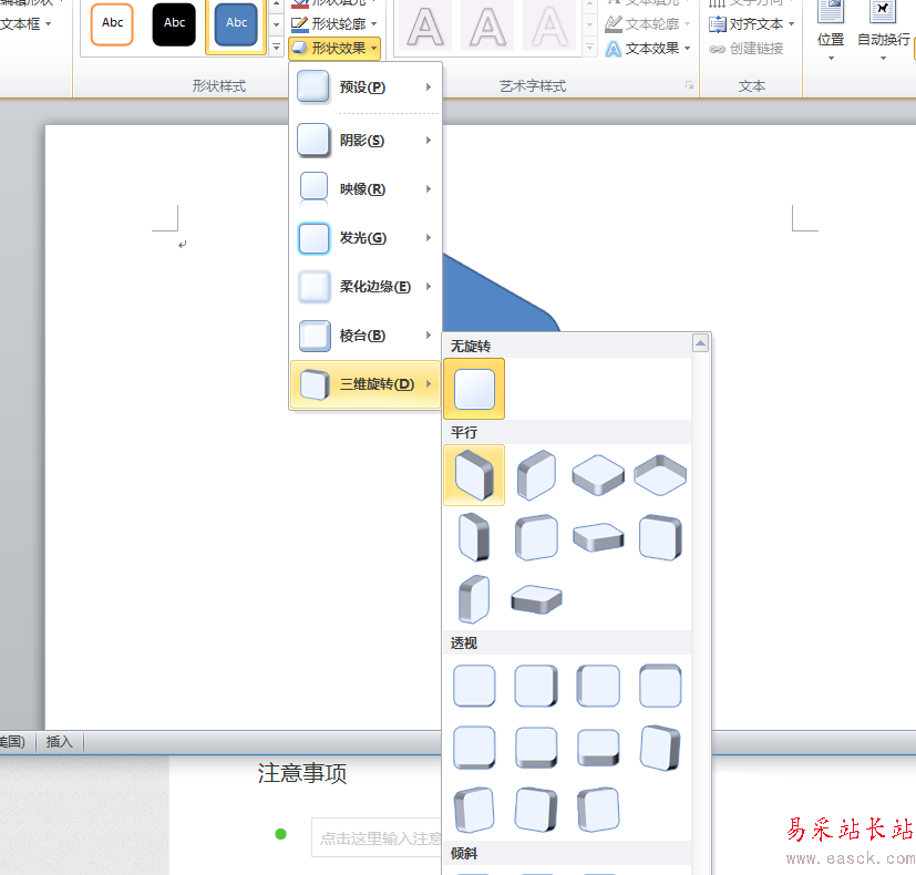 4、形狀效果,選擇三維旋轉,平行,選擇三維的觀察視角