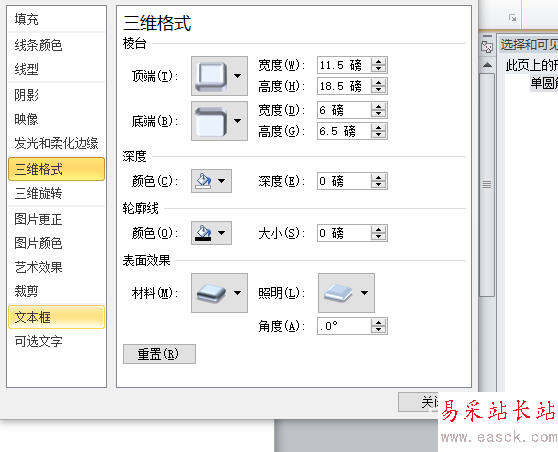 5、選擇棱臺,選擇棱臺樣式,單擊三維選項修改數值
