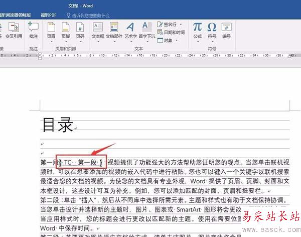 9、就能看到剛才在TC域輸入的文字被添加到了目錄中。