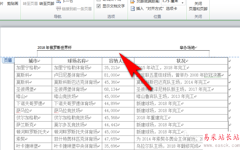 2、我們在頁眉線位置進行雙擊,進入到頁眉的編輯狀態,如圖所示。
