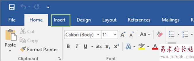 3、從功能區中,單擊插入選項卡。