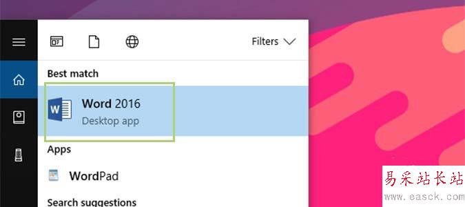 1、在Cortana搜索欄中,鍵入Word,然后按Enter打開Microsoft Word。