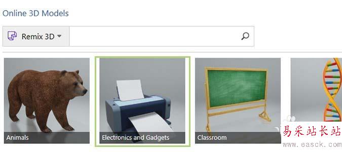 4、選擇3D模型,然后選擇您自己的文件或Online Sources中的文件,該文件允許您從Remix 3D社區下載藝術作品。