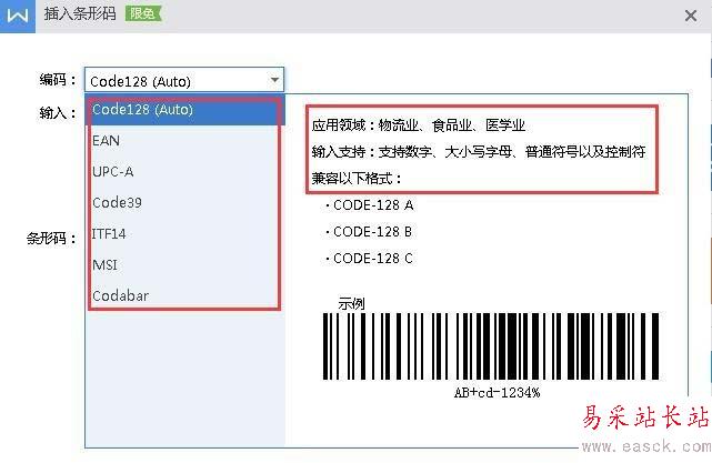 6、選擇一個(gè)適合你用的,上面都是介紹適合什么行業(yè),支持是純數(shù)字還是數(shù)字字母,選擇一個(gè)