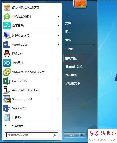1、點(diǎn)擊開(kāi)始,打開(kāi)控制面板