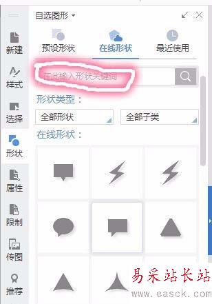 6、在搜索欄中輸入想要的形狀名稱