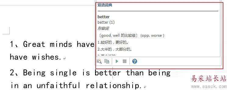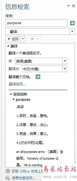 (3)這時文檔右側窗格會看到所選文字的翻譯。