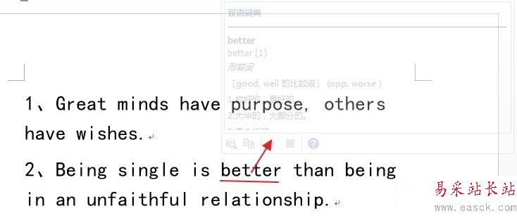 (2)鼠標放置在要翻譯的單詞或詞組上,這時上方會顯示半透明的譯文框。
