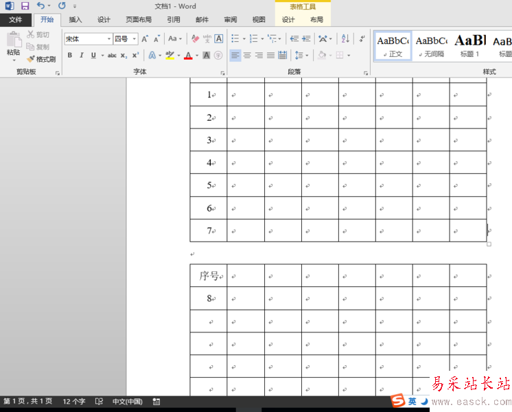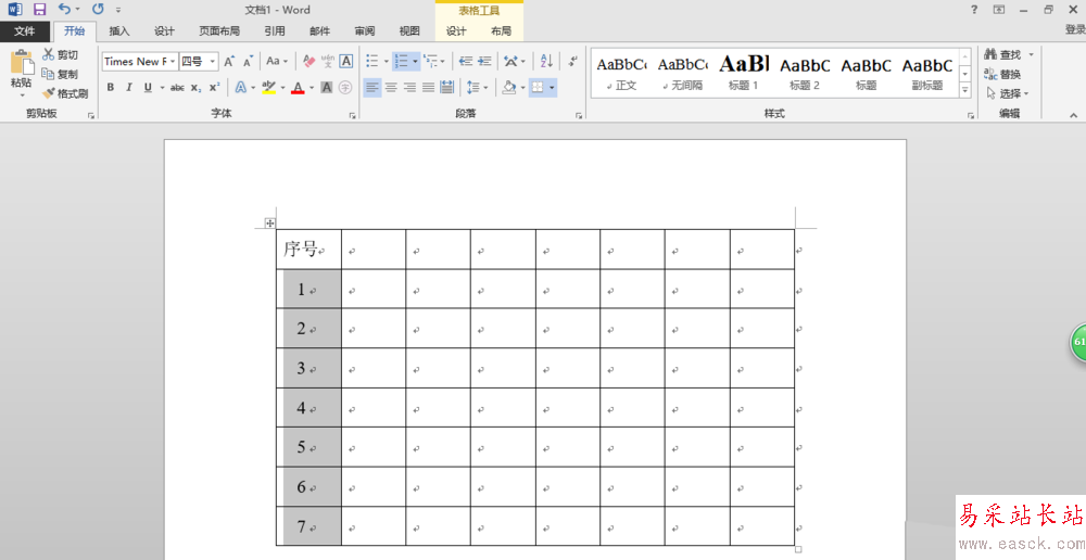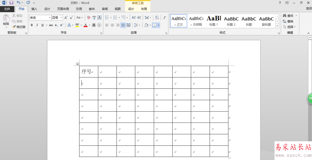 1、首先,我們打開一個空白的WORD的文檔,建立一張表格,并在表格的第一列第一欄輸入“序號”;