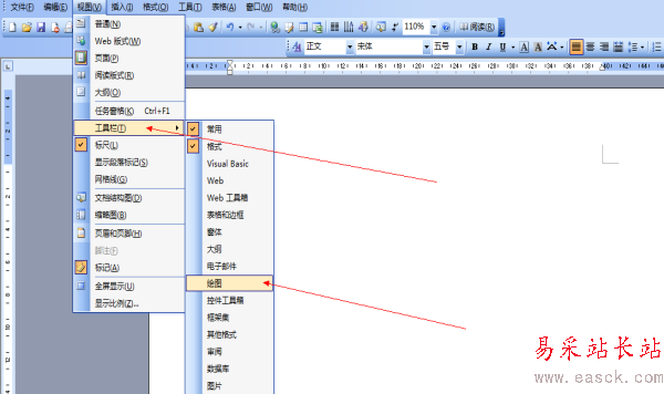 2、單擊“視圖”下面“工具欄”——“繪圖”命令。