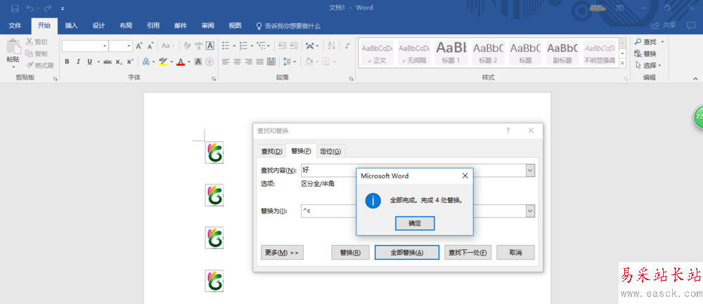 4、"查找內容"輸入好、"替換為"輸入^c,點擊全部替換。
