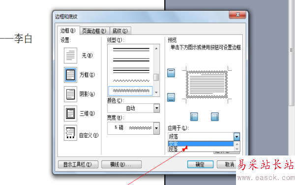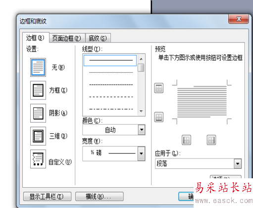 3、自動彈出“底紋和 邊框”的命令。