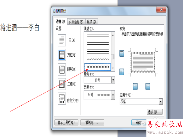 4、在線型中選擇雙波浪線。