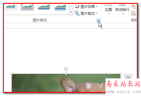 2、鼠標點圖片,使圖片在選中的狀態;然后,點菜單欄的圖片樣式右側的小箭頭。