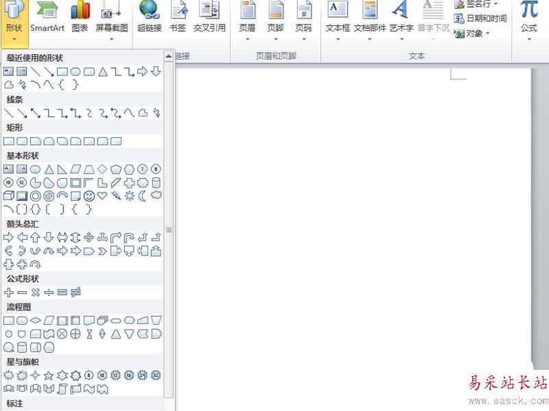 1、首先啟動word2010,新建一個文檔,執行插入-形狀命令。