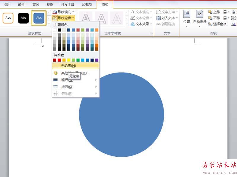 3、選擇正圓,執行格式-形狀輪廓命令,設置為無輪廓。