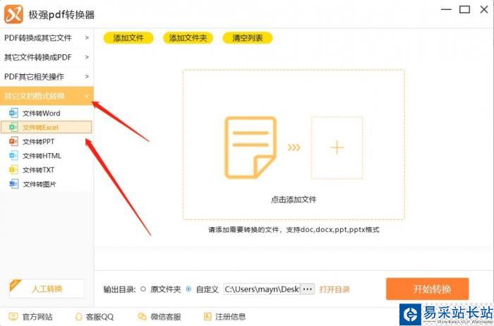 2.雙擊運(yùn)行下載好的文件轉(zhuǎn)換器,進(jìn)入軟件的操作主界面,在界面左側(cè)的功能選擇欄中點(diǎn)擊選擇“其它文檔格式轉(zhuǎn)換”里面的“文件轉(zhuǎn)Excel”