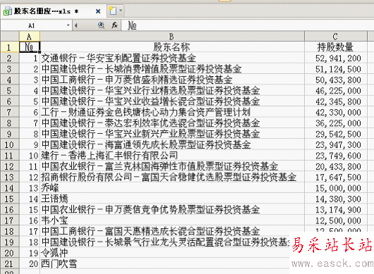 2、一般上市公司的股東都在萬名以上。現在我們想分析其機構投資者的持股情況;如果是一家基金公司旗下的幾只基金,我們還想了解一個每個基金公司的持股數量。該怎么辦呢?