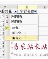 點擊“字符長度”的黑色小三角形,選擇(自定義)