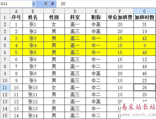 只需要在單元格中輸入如下公式:“=SUMPRODUCT(($C$2:$C$15="男")*(($D$2:$D$15="高一")+($D$2:$D$15="高二"))*($E$2:$E$15="中一"),$G$2:$G$15,$F$2:$F$15)”,按下回車鍵,就可以得到需要的結果了。非常方便。
