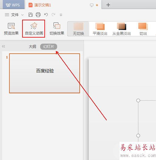 3、在【動畫】工具列表中單擊【自定義動畫】選項。