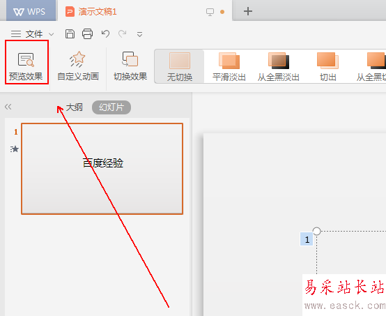 1、在wps幻燈片文檔中點擊選中需要制作效果的文字。