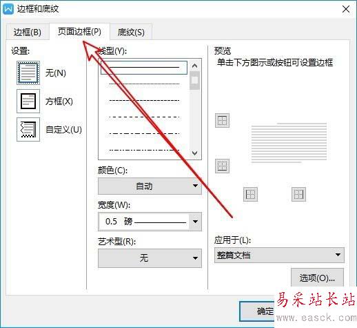 3、這時就會打開邊框和底紋的窗口,在窗口中點擊“頁面邊框”的選項卡。