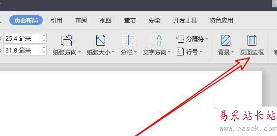 2、接著點擊頁面布局工具欄上的“頁面邊框”的按鈕。