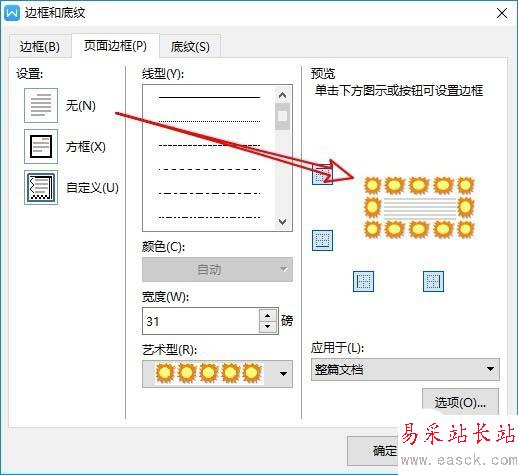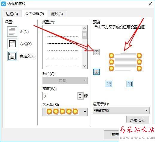 4、接著點擊右下角的“藝術型”下拉按鈕,在彈出菜單中選擇藝術型的邊框