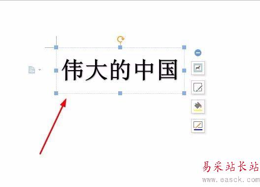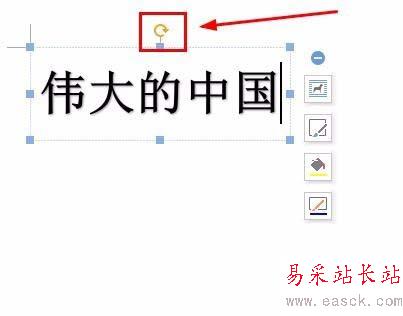 6、在這個對話框內輸入文字,并選擇剛剛輸入的文字,可以看上面有個在旋轉圖標,如圖所示: