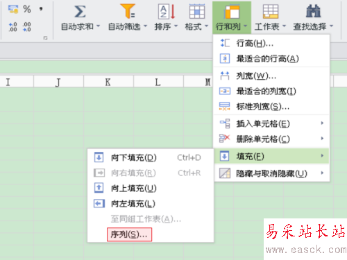 點擊序號1單元格。在”填充“選項中選”序列“。