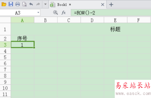 將序號設置成自動排序,用插入函數的方法實現。在表格中輸入“=ROW()-2“,回車確認。編輯欄中顯示的就是表格中的內容。