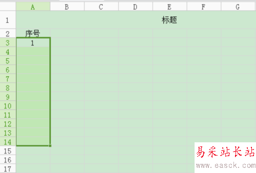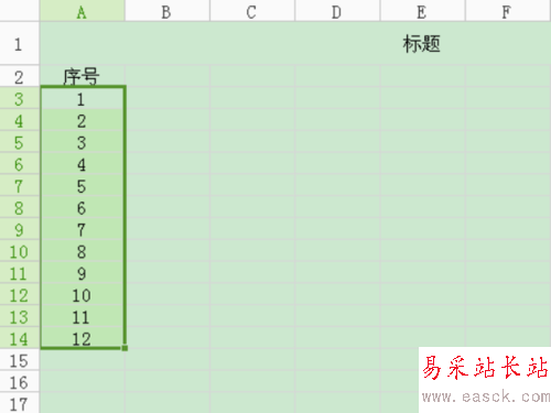 點擊序號1所在單元格,按住Shift鍵,我們想增加12行,點擊自帶序號14處的單元格。選擇完成。