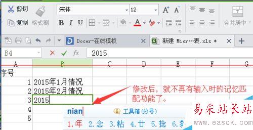 修改后,再去表格中輸入相同的內容,wps表格不再有記憶匹配功能。