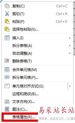 7、選中后,單擊鼠標(biāo)右鍵,在展開的菜單中,我們選擇“表格屬性”,點擊進入到“表格屬性”控制面板中。