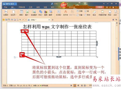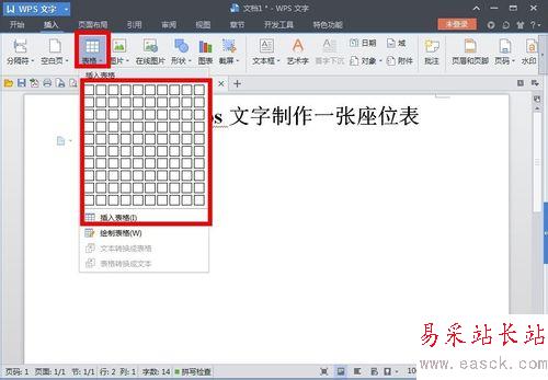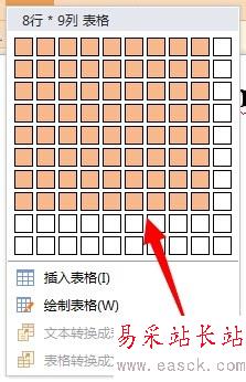 如果你的座位人數(shù)少于一百人,或在十乘以十的表格中能夠完成,那你可以直接在展開的表格中,選擇你需要插入的表格數(shù)目。如下圖所示。