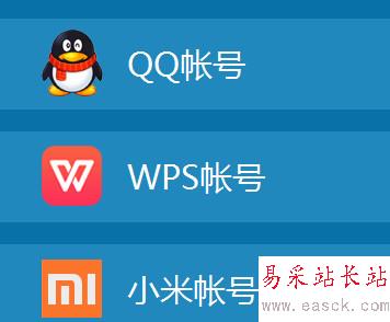 2、您可以選擇多種登錄方式,小編以QQ帳號為例介紹登錄使用wps云存儲的功能。點擊“QQ帳號”,選項,如圖所示