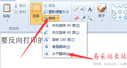 第五步,打開電腦自帶的畫圖功能,把圖片粘貼上去,然后進行水平轉換,如圖