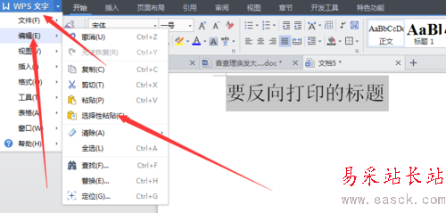 第二步,打開左上角文件,然后選擇編輯,在拉出菜單中,找到“選擇性粘貼‘如圖