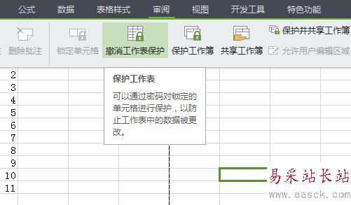 5、若果你要再次進行編輯,那么你就要在“審閱”菜單中,選擇“撤銷工作表保護”,