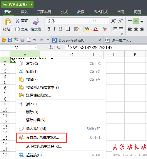 在使用wps表格過程中,在單元格中輸入超過11位的數值,就會默認使用科學計數法表示了,為了使輸入的長數據顯示完整,可以先將單元格格式設置為”文本“。操作看下面: