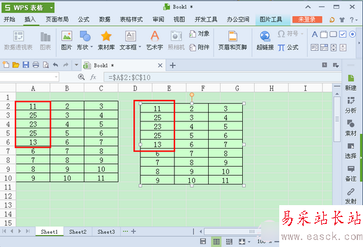 三、在數據區域內更改數據會發現“照相機”圖也同時發生數據區域一樣的改變。
