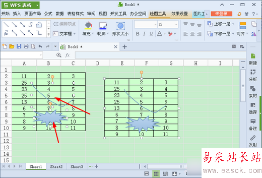 二、在表內空白位置拖出一個“照相機”圖,照相圖所拍攝的就是剛才建立的數據區域。