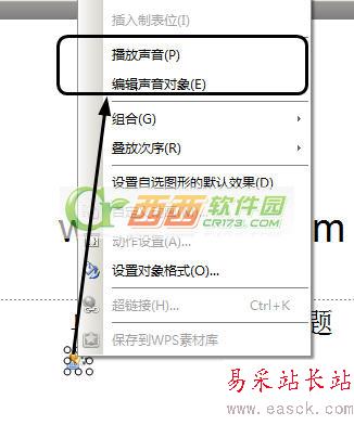 怎么播放出聲音呢?反鍵點擊喇叭圖標,會有播放聲音和編輯聲音選項。點擊播放,單擊鼠標即可結束播放。