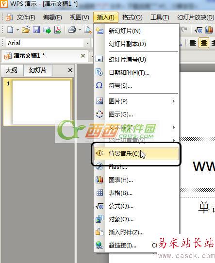 點擊導航欄“插入”,你會看到一個背景音樂。